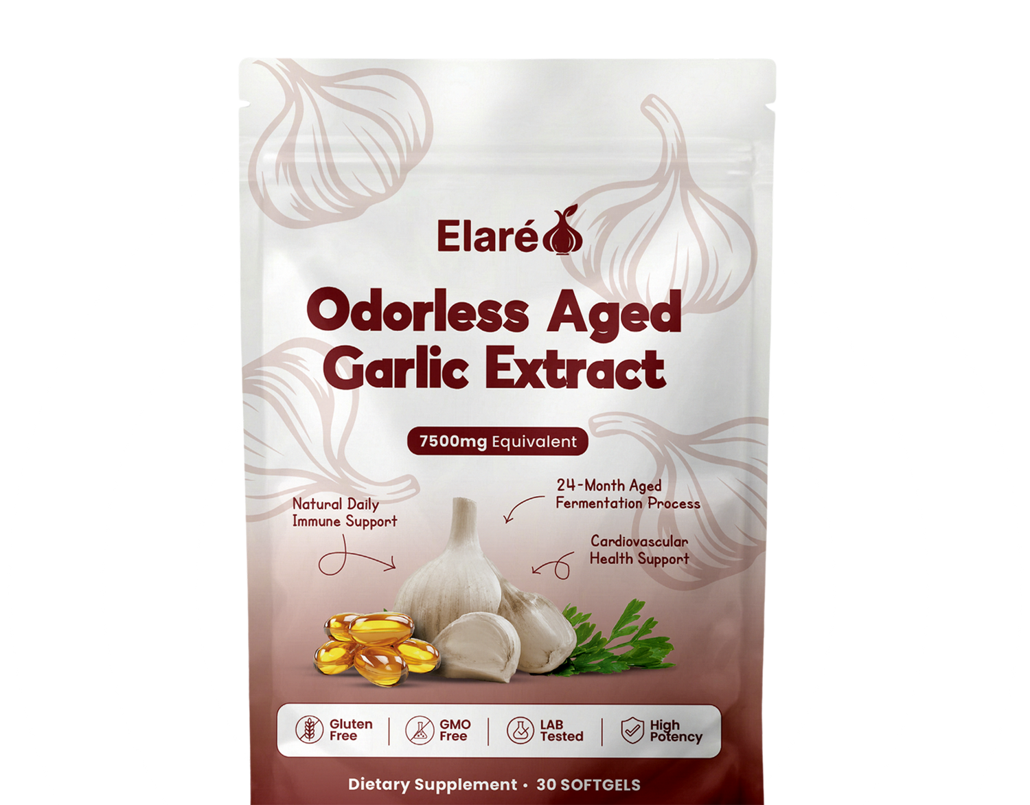 Elaré® Aged Garlic offers a simple, odorless way to include this time-tested ingredient in your daily routine. Each softgel delivers 7500mg of aged garlic extract, carefully prepared to be gentle on digestion and easy to take every day.