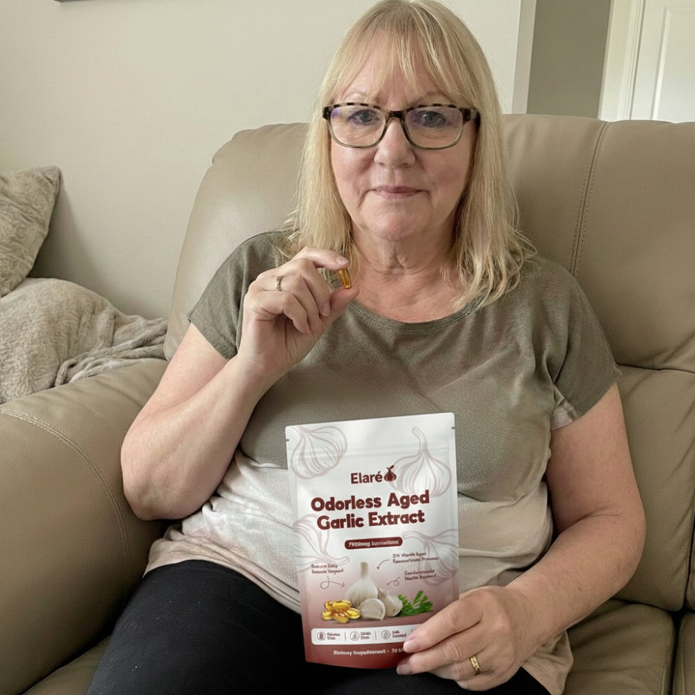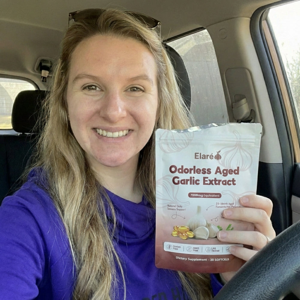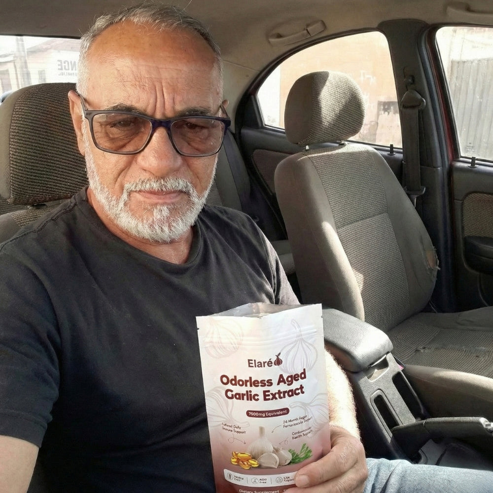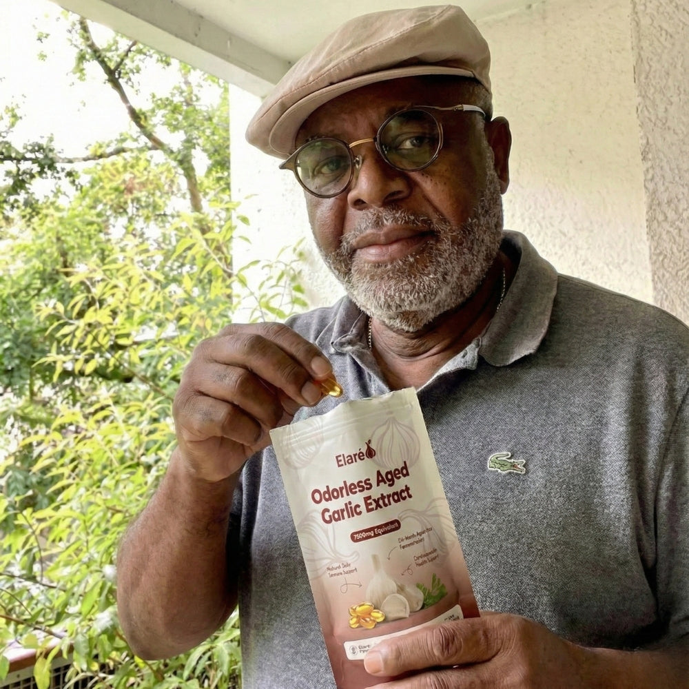 Elaré® uses odorless, slow-aged garlic extract designed for daily cardiovascular, immune, and antioxidant support. Backed by decades of scientific research.