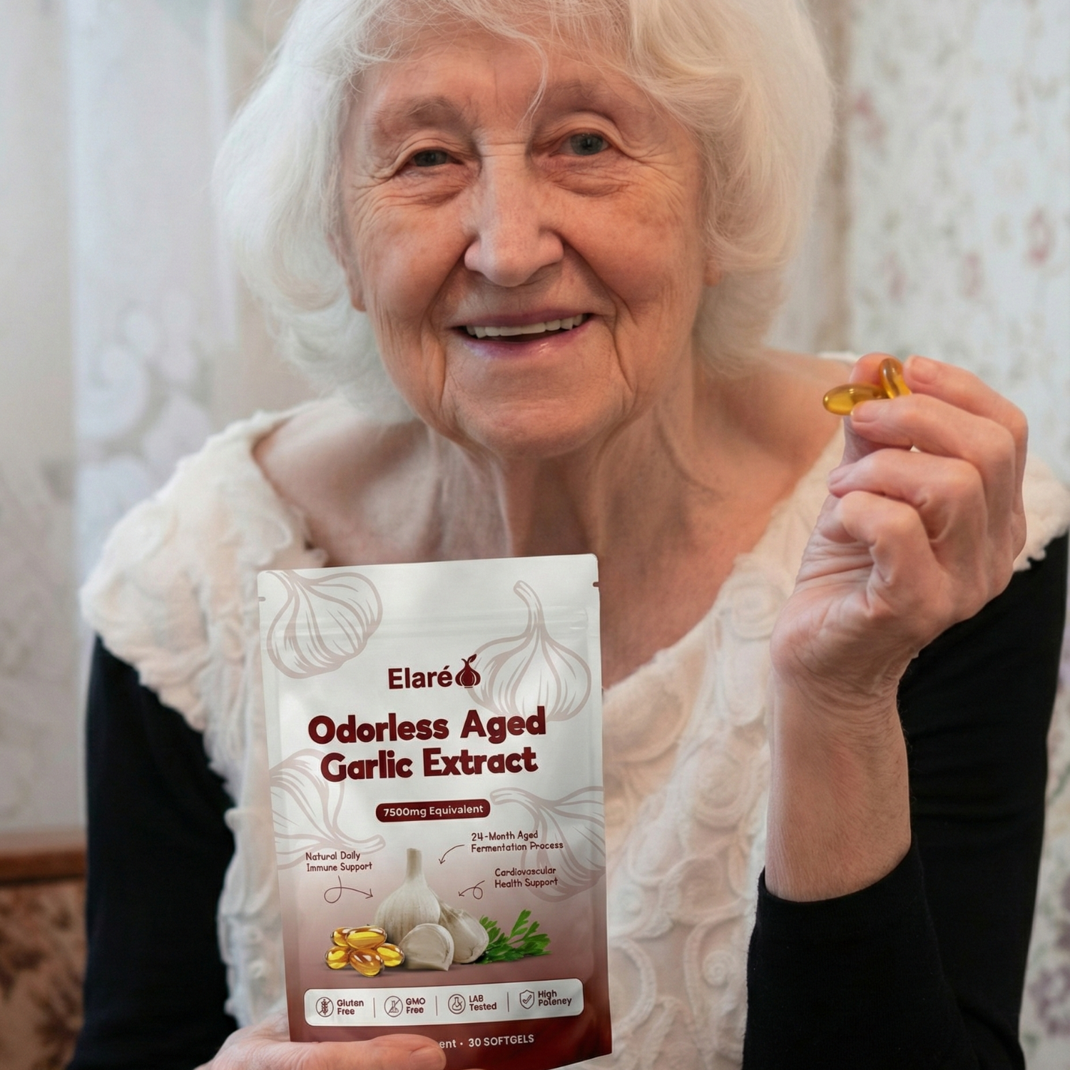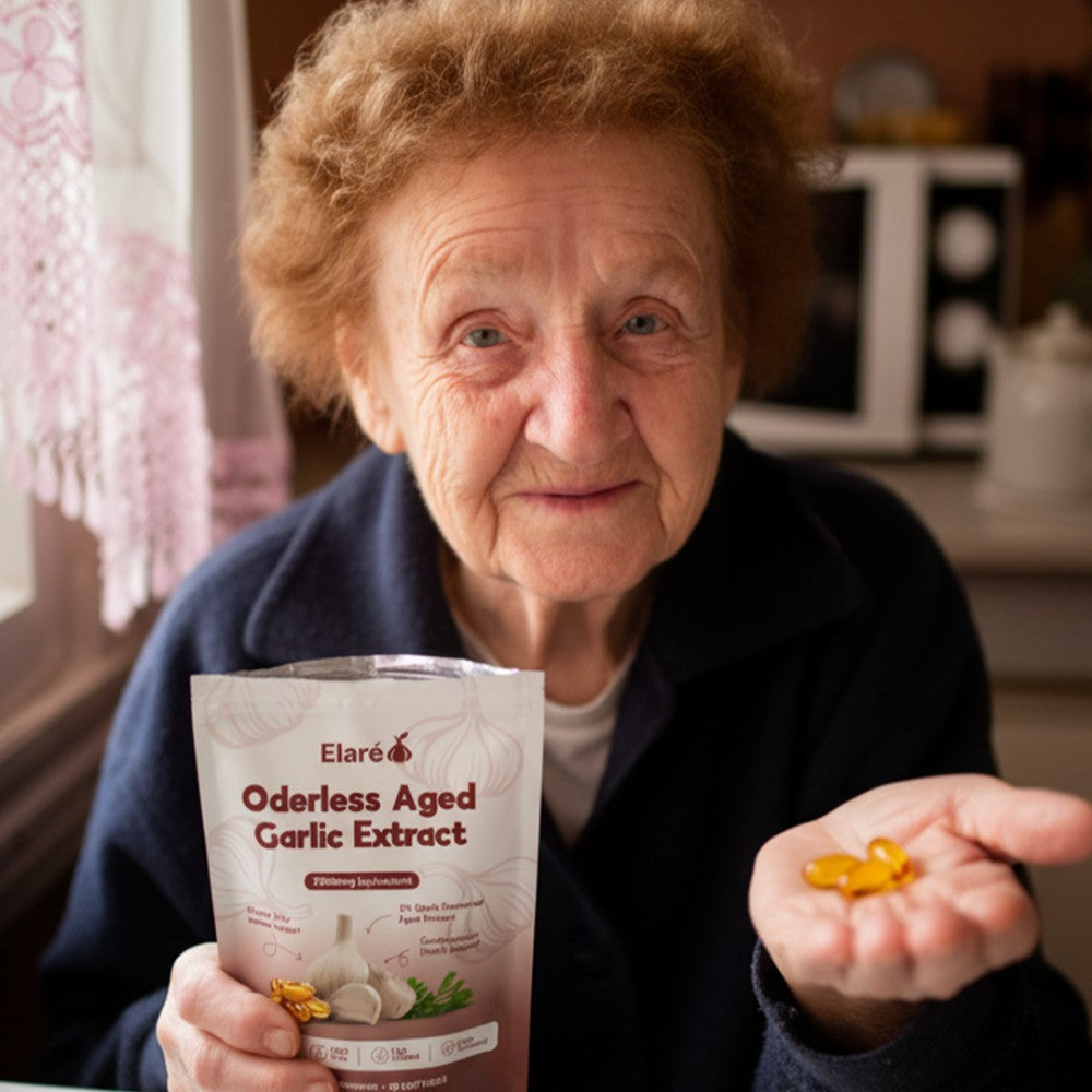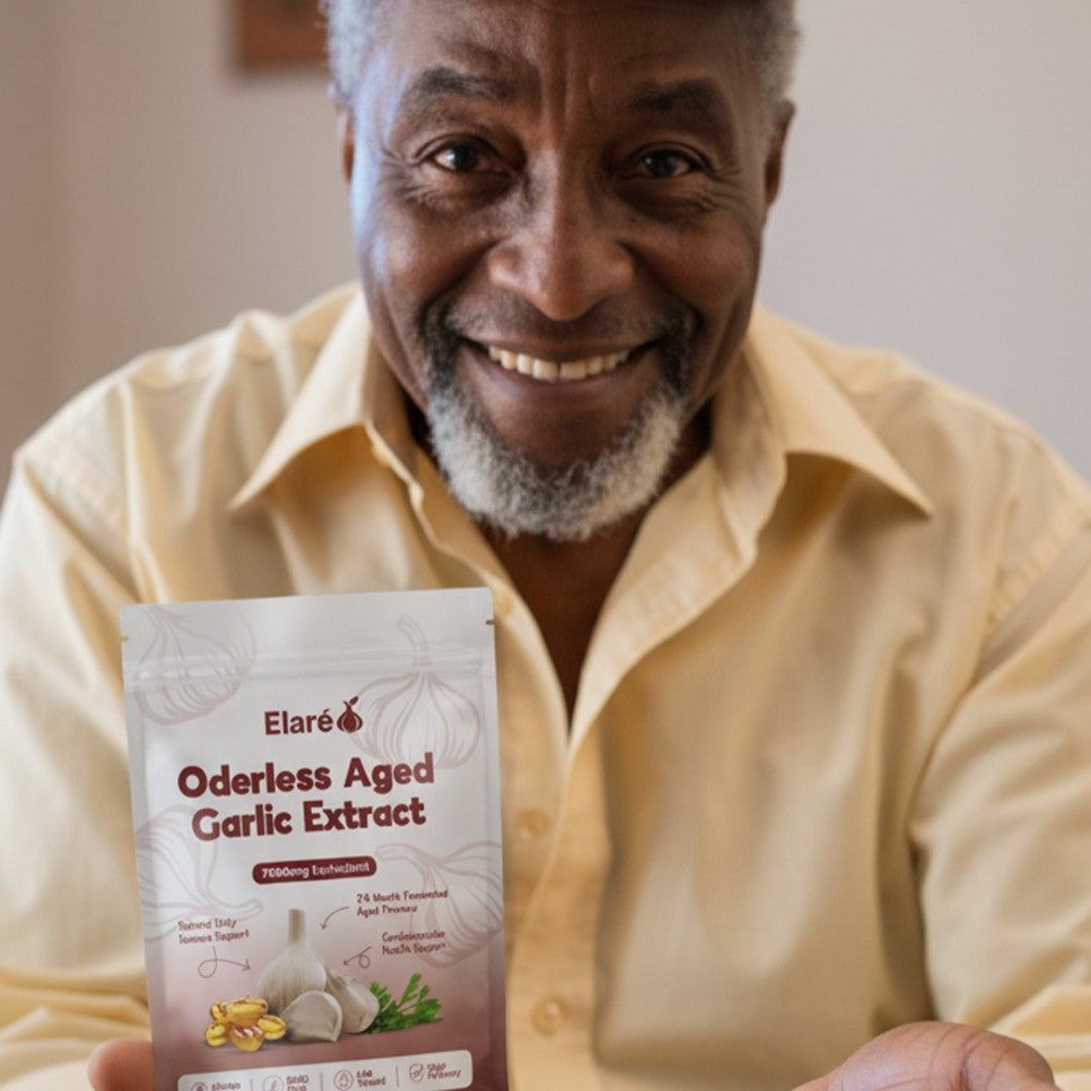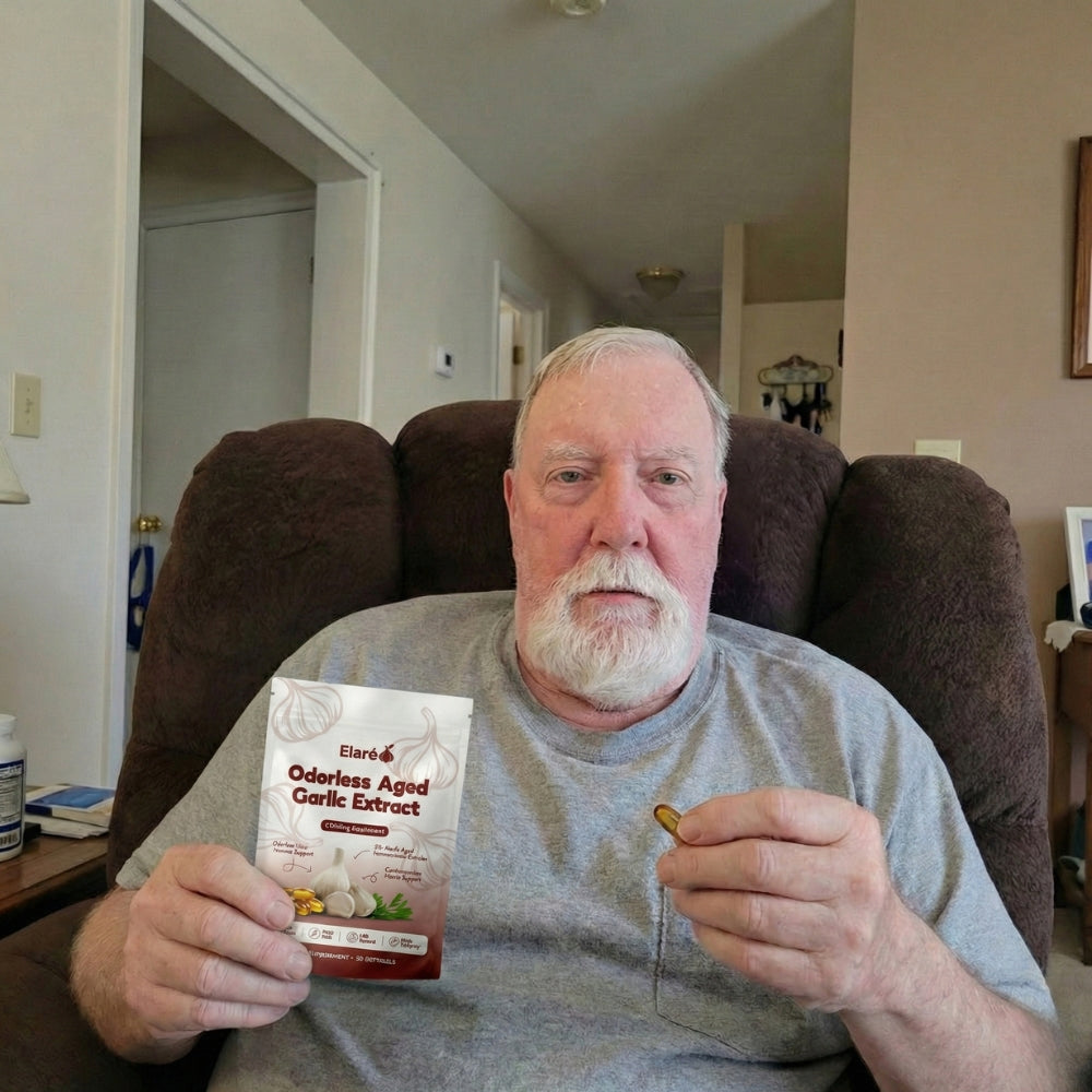 Elaré® uses odorless, slow-aged garlic extract designed for daily cardiovascular, immune, and antioxidant support. Backed by decades of scientific research.